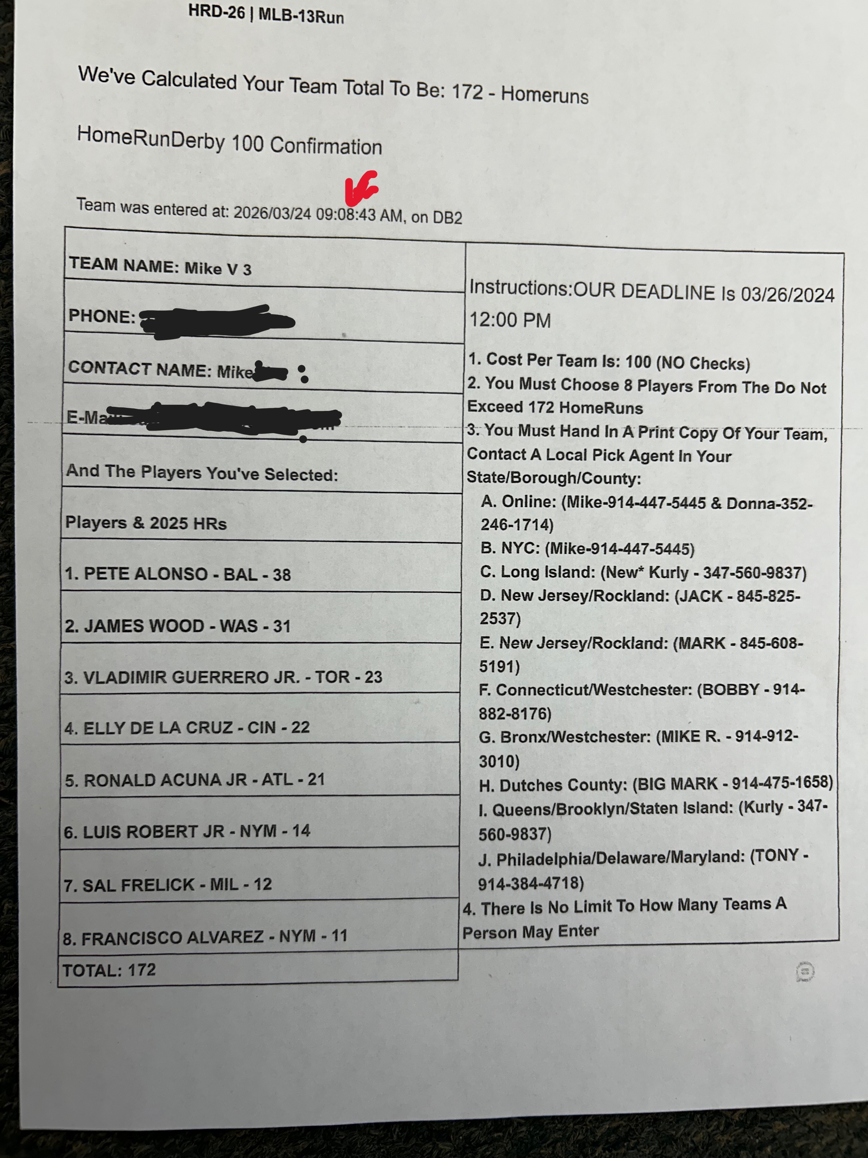 | 2298 | MARUADERS B.K | PETE ALONSO - BAL - 38 | RAFAEL DEVERS - SF - 35 | JOSE RAMIREZ - CLE - 30 | BOBBY WITT JR - KC - 23 | JARREN DURAN - BOS - 16 | XANDER BOGAERTS - SD - 11 | PAUL GOLDSCHMIDT - NYY - 10 | MAX MUNCY - OAK - 9 |